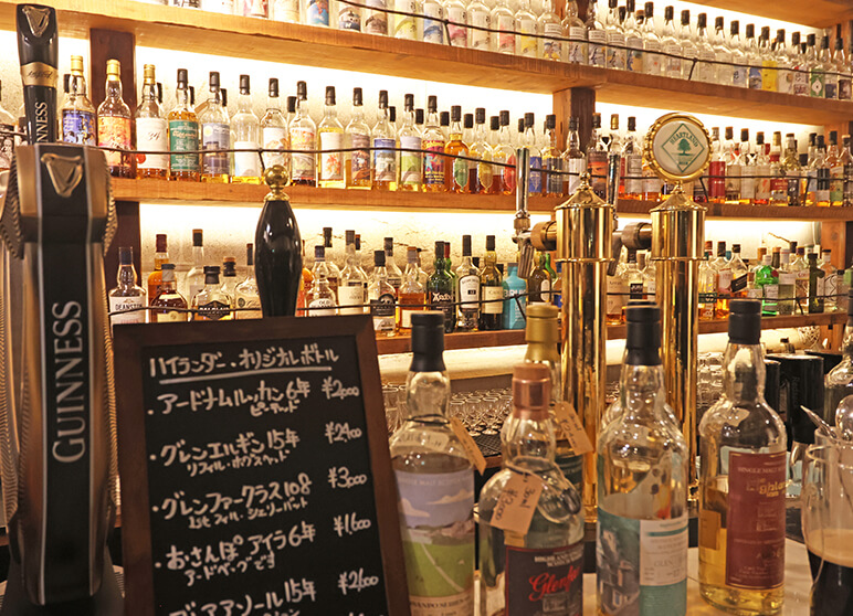 The Chichibu branch of an authentic Scottish whisky bar. Try the Chichibu Malt & Grain whisky from the Chichibu Distillery and a Scottish-style portion of fish and chips!