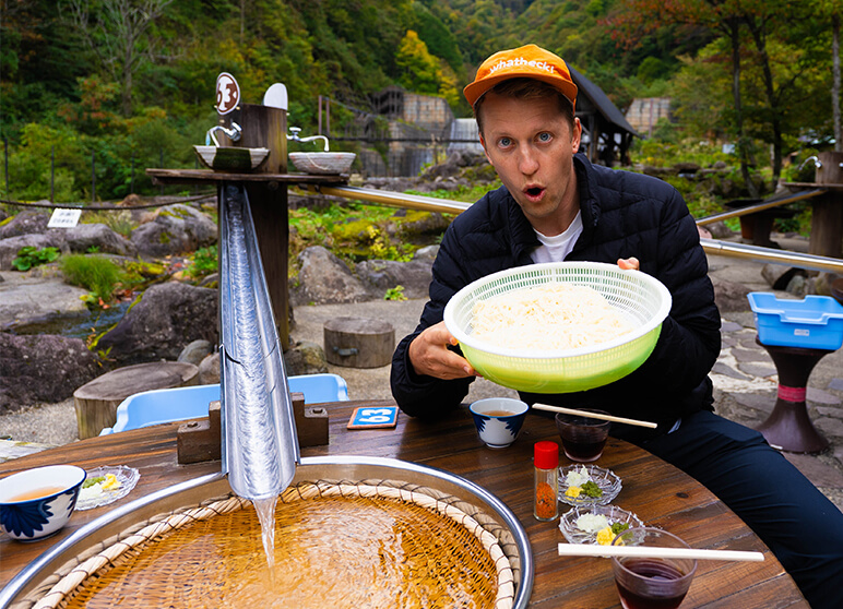 A restaurant located at the entrance to the Naena Waterfall trail. Experience eating ‘nagashi somen’ noodles, which you grab with chopsticks as they flow down a water-filled bamboo tube. The firmness of these somen noodles is due to being made with cold spring water from the mountains.