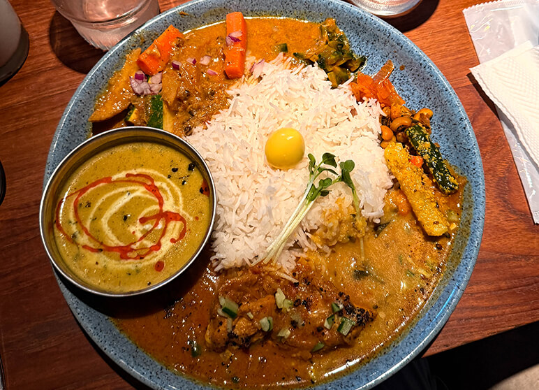 A restaurant hidden away in Sendagaya that serves authentic spiced curry at lunch. Three types of curry are available, and you can also half-and-half. Gluten-free and additive-free selections are also available.