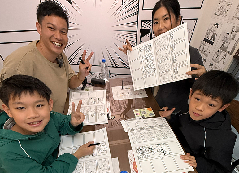 A spot where you can have a variety of experiences based on the theme of Japan’s manga pop culture. The most popular workshop is a program in which you can receive a lesson from a professional working anime artist and create a manga with the tools they actually use to draw. Families are welcome to participate.