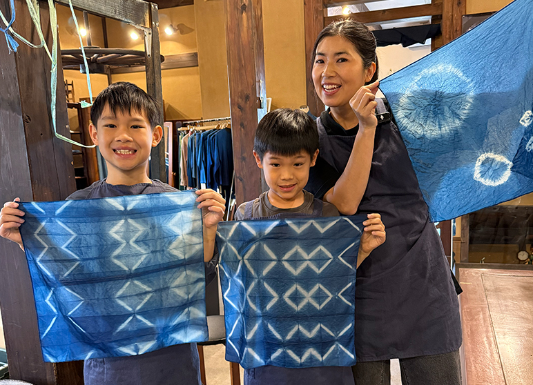 At this workshop you will experience dyeing under the careful guidance of an artisan and using indigo produced from a natural lye fermentation method. Items that can be dyed include handkerchiefs, bandanas, and T-shirts. You can come empty-handed or bring your own T-shirt or other items to be dyed.