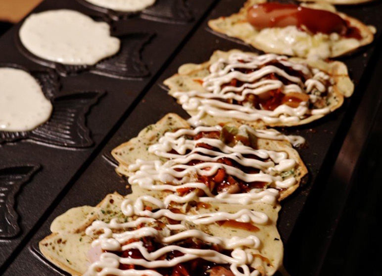 Taiyaki has been a favorite snack of Japanese people for over 100 years. At Guraku, visitors can experience making taiyaki by hand from the dough and using authentic commercial equipment to bake it. In addition to the standard taiyaki with sweet red bean paste and cream, you can also make different types of taiyaki, such as keema curry and cheese.