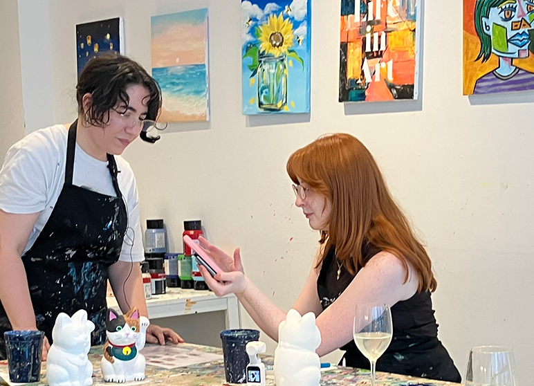 A facility where you can make art while relaxing with wine, non-alcoholic drinks, light snacks, and more. A popular activity is painting a papier-mâché beckoning cat (maneki-neko) to create your very own original beckoning cat.