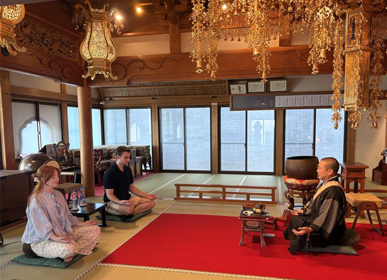 A meditation experience where you can learn about Buddhism at a temple founded in 1359, with a view of the ocean. Step away from the noise of daily life to tune and reset both mind and body, as you learn the foundations of mindfulness—focusing on being fully present in the here and now. Take a moment just for yourself and feel refreshed. Don't miss the temple stamp (goshuin) made with traditional Japanese paper-cut art (kirie)!